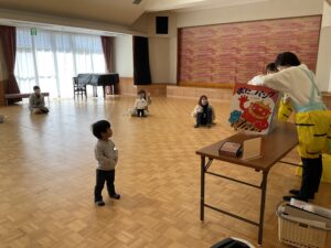 最後は『おまめくんぱちぱちー』の紙芝居を見ておしまいです📕
