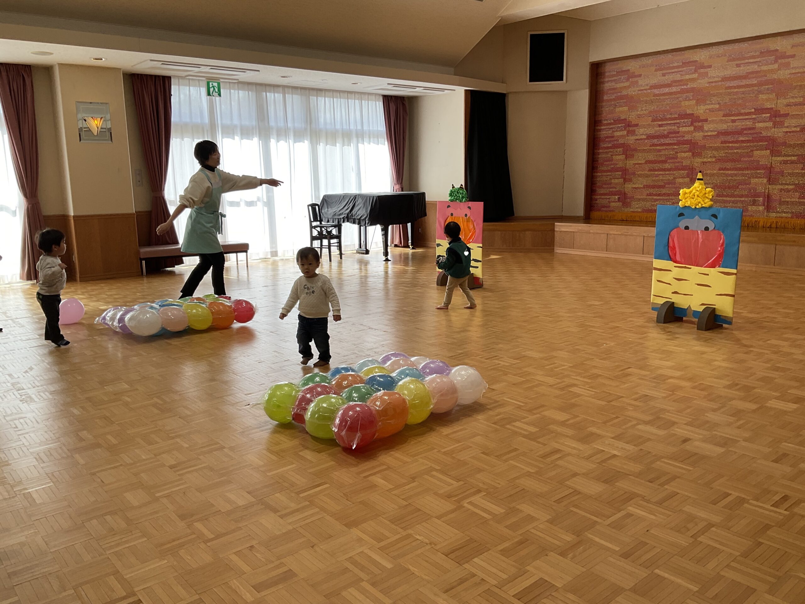 バルーンマットの上を歩いて、鬼さんの口に風船をお片付け👹🎈♪♪