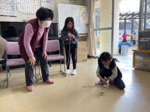 「回し方が先月より上手になったね」と褒められて嬉しそうな子ども達でした。