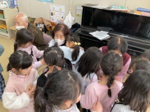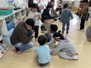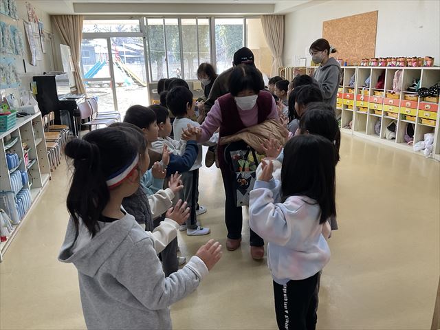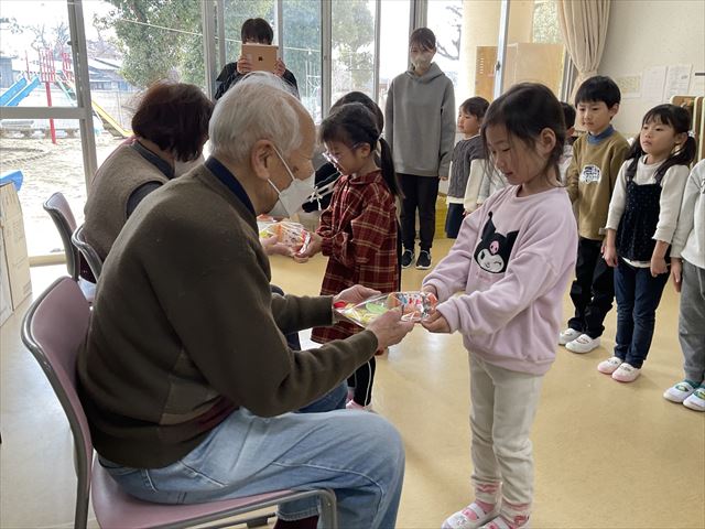 2月12日 年長児中心に、“歩美ちゃん!活き生きクラブ和泉”の利用者の方とCS交流を楽しみました。