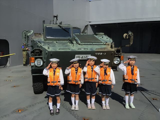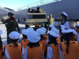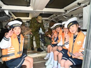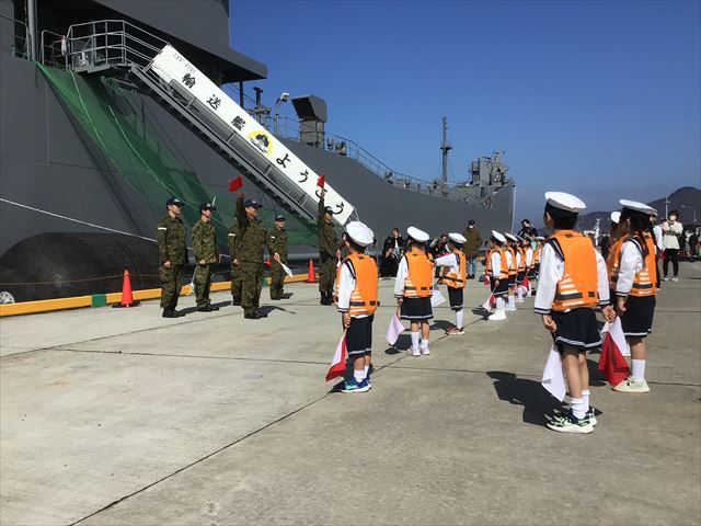 すると、「また来てね」を手旗で自衛隊の方が披露してくれて、少しの時間ですが、交流を行う事が出来ました。