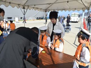 船に乗艦させて頂けるという事で子ども達は、とてもワクワクしている姿見られました。